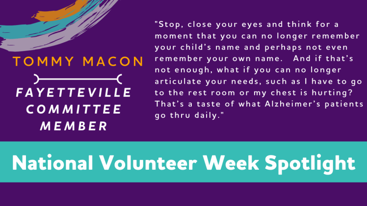 We are endlessly grateful to our volunteers for giving their time to better the lives of those impacted by Alzheimer’s and other dementias. Our volunteers are truly the heart of the Alzheimer’s Association here in North Carolina.