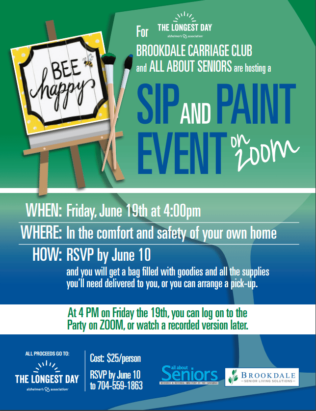 Perhaps you want to join the Sip and Paint Event that All About Seniors and Brookdale Senior Living Solutions are hosting, or maybe this has inspired you to register for The Longest Day and host your own fundaiser. Learn more and explore more creative ideas at alz.org/thelongestday.
