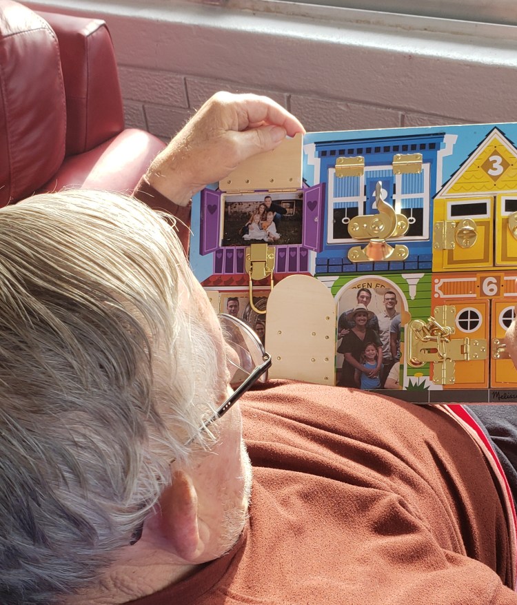 Up until last June, Chuck was still driving, although Michele admits this might not have been the safest activity. His diagnosis came in the subsequent summer months and after a brief one-day stint with home care. He was admitted to a skilled nursing facility in August of 2019. This whirlwind disease rocked Michele’s family as they quickly rallied to provide care and support for both her father and her mother as a caregiver. Michele shares that she is glad she had the knowledge that she does due to her profession, but cautions that it did not fully prepare her to fight this fight within her own family.