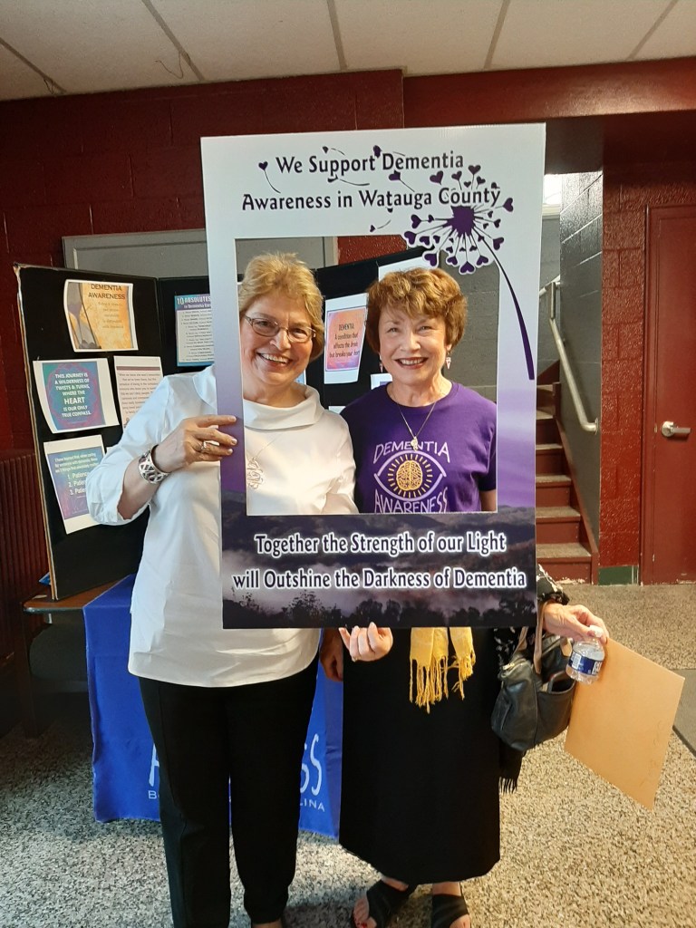 At age 56, Pam was initially diagnosed in 2011 with mild cognitive impairment, which causes a slight but noticeable and measurable decline in cognitive abilities, including memory and thinking skills. A few year’s later, she was diagnosed with younger-onset Alzheimer’s, which refers to those living with the disease who are younger than 65 years of age. “At that time, the medical team told us to do those devastating things like go get your wills done, you have a short period of time.”  Pam had always managed the banking and financial work for both their home and insurance business for well over 20 years. “They told us that I should give up all financial responsibilities.  It was devastating to have everything that you did both at home and at work gone within just a couple weeks.” Pam did not feel like her condition was that bad, yet she could not get any answers.  She did have an MRI that showed a little change; however, it was not until they moved from the Sandhills area of North Carolina to the mountains to be closer to their children’s families that Pam and Jimmy learned more about her condition. After moving, they went to Winston–Salem to sign up for a clinical trial.  A PET scan determined that Pam not only had frontotemporal dementia (FTD) but also kidney cancer.  The clinical trial consequently was no longer an option.  “I remember meeting with the anesthesiologist in preparation for my [cancer] surgery,” continues Pam.  “He asked me why I was taking certain medications, and I answered with my recent diagnosis of younger-onset Alzheimer’s.  He rolled his little chair and started talking to my husband and totally ignored me. I lay there crying thinking that I had become invisible because of this diagnosis.  What I said no longer mattered anymore. It was so heartbreaking.” After that experience, Pam and Jimmy talked and agreed that if that type of situation occurred in the future that he would speak up and say, “Ask her, and if she can’t answer, I will help her.”