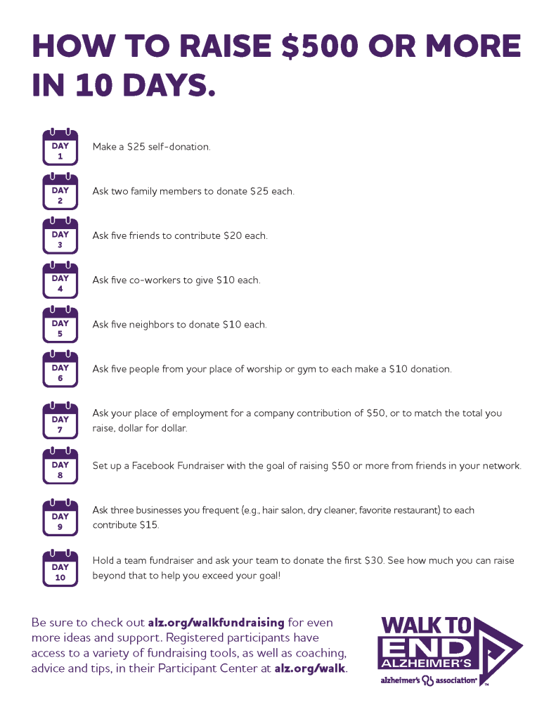 Jump start your fundraising at alz.org/walk to earn your bag! Check out our tips on how to raise $500+ in 10 days!