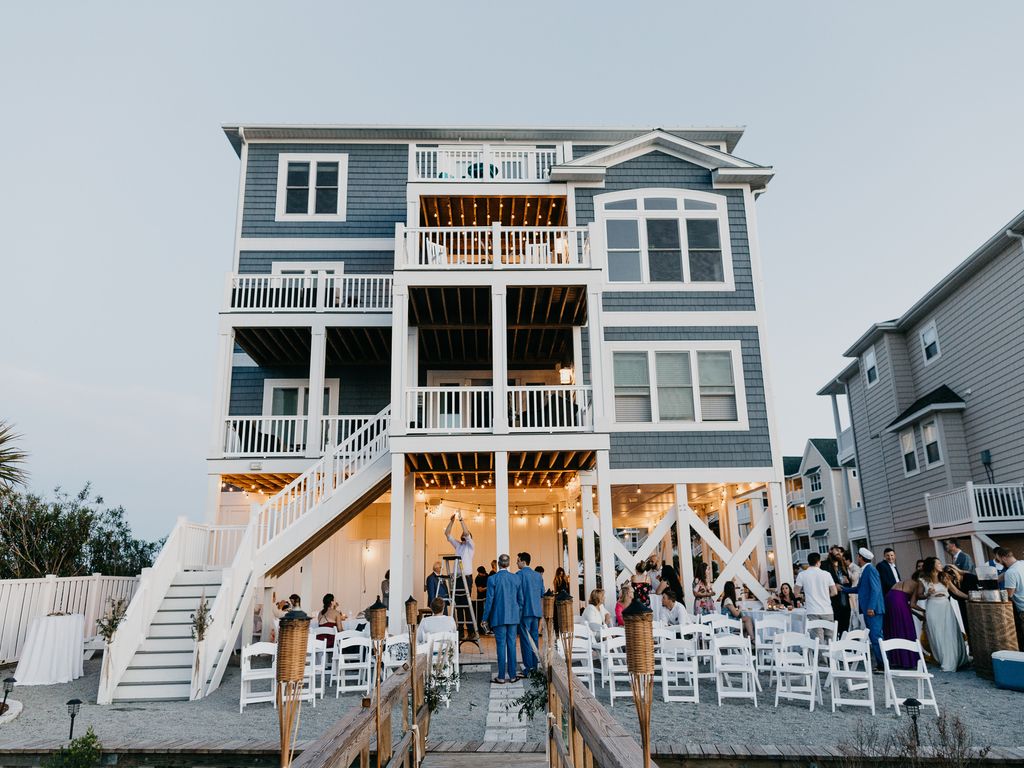 Nothing will compare to a 7 nights stay at Any Port in a Storm located at Ocean Isle Beach. This waterfront spectacular upscale home sleeps 18, which makes it a great choice for a large group with lots of room. A beautifully decorated brand new 7 bedroom home with 3 master suites, has 3 levels (elevator goes to all levels). Three levels of back deck overlooking the sound. Plenty of fun stuff included – 2 bikes, beach toys, beach chairs and umbrella, golf cart, kayak and paddle board. Just 400 yards from the beach access, and 1/2 mile from parking at the oceanfront Isles Beach Club pool. The Isles Beach Club is an ocean front private pool that also has an excellent restaurant.