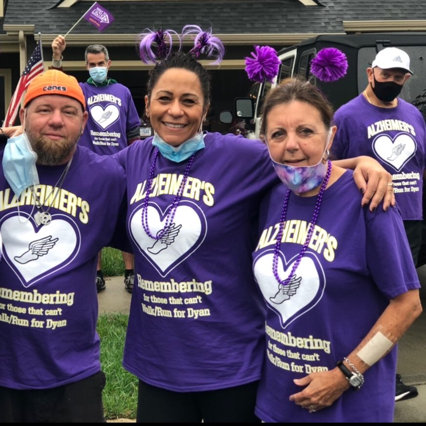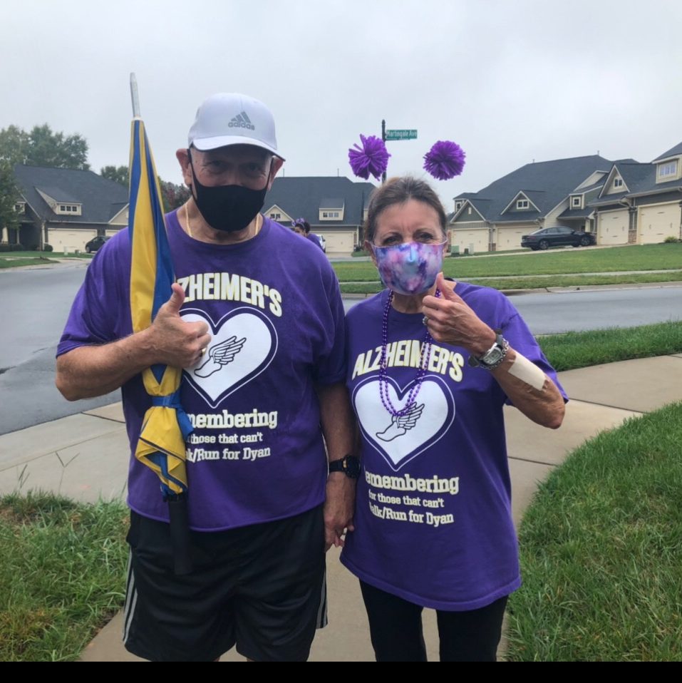 Through the family’s caregiving journey, there have been calls to the Association’s 24/7 helpline. Honey appreciates this service, giving the family a sense of community, “knowing that you have an advocate, that someone is in your corner. There is place you can call at any time.” There also have been online connections. But most of all, there has been a real sense of hope for the future through participating in the Walk to End Alzheimer’s- Iredell County. They unfortunately had to miss their first year event due to work schedules, so the family first walked together in 2020, in the midst of the pandemic. Somehow, through the adversity of caregiving in the middle of an isolating epidemic, Honey’s walk team Team Di managed to be the top fundraising team! The family donned their purple hats and walk t-shirts and walked around Dyan’s neighborhood. Even in the drizzle, they met two neighbors who offered donations on the spot. “We got featured on the local news! [I loved] hearing her name and sharing her story. It was such a moment of honoring her,” remembers Honey. Friends from all around the country were watching the family’s news spot and sent supportive text messages. Her dad even teared up taking pictures as a family. This day literally gave the family “a bounce in their step.”