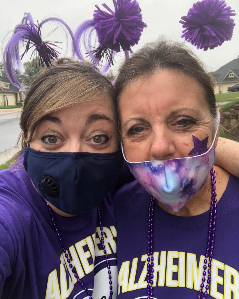 Dyan was diagnosed with Alzheimer’s disease two years ago. While some families would take an -understandable- moment to pause and mourn this unknown new future, Honey and her family dove right in to finding solutions that worked for them. Honey contacted the Alzheimer’s Association on the day her mom was diagnosed to discuss care planning, disease information, and how to give back to families like hers. Honey’s father, a football coach and educator, worked in the same school as Dyan. During the diagnostic process, the couple decided to retire early on the same day, “walking out hand in hand” to start their care partner journey together. Honey’s parents actually moved to a house three miles away from Honey so she could assist with her mom’s care early last year as the pandemic was growing. “We now live closer than we ever have before,” exclaims Honey.