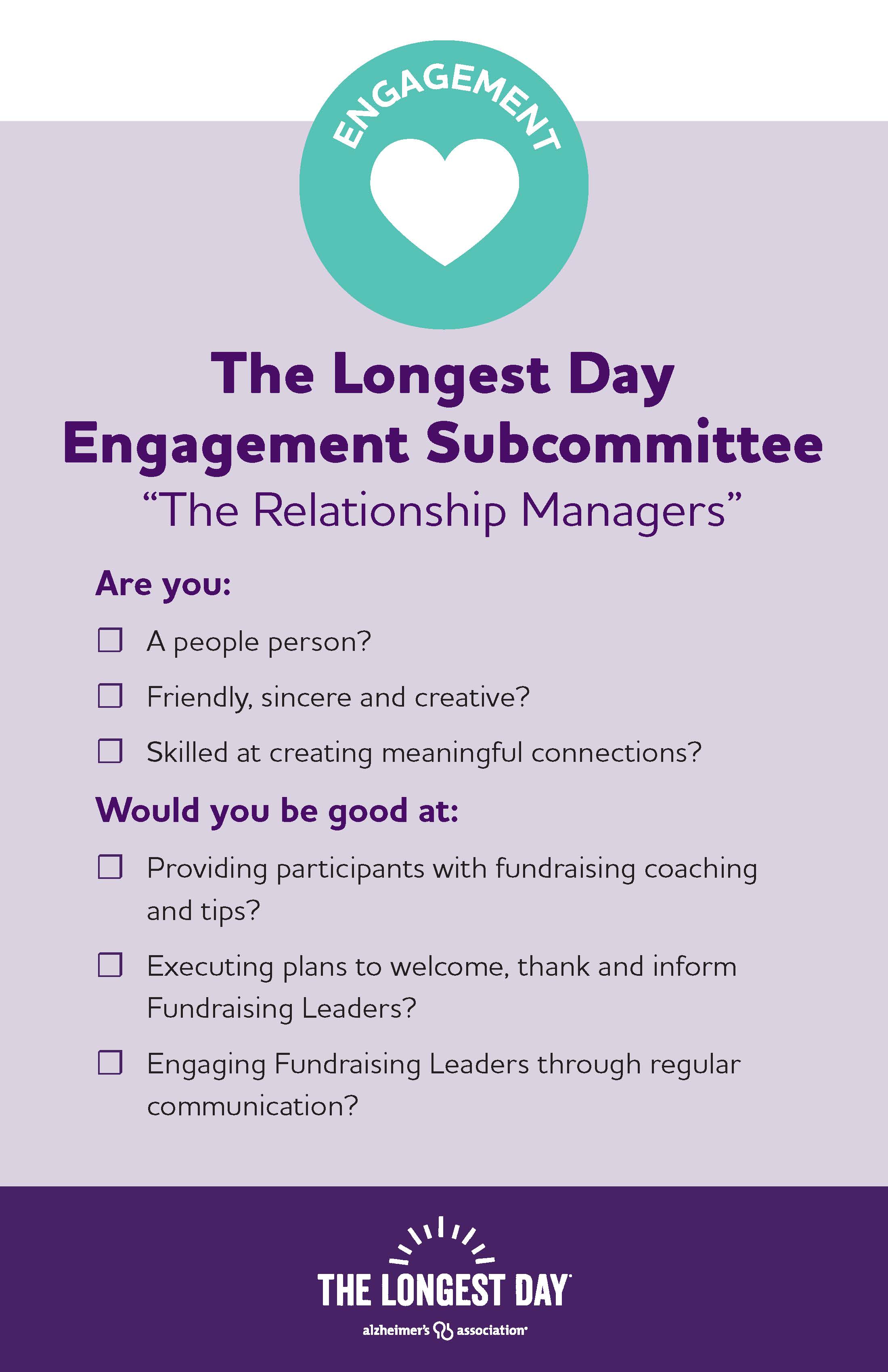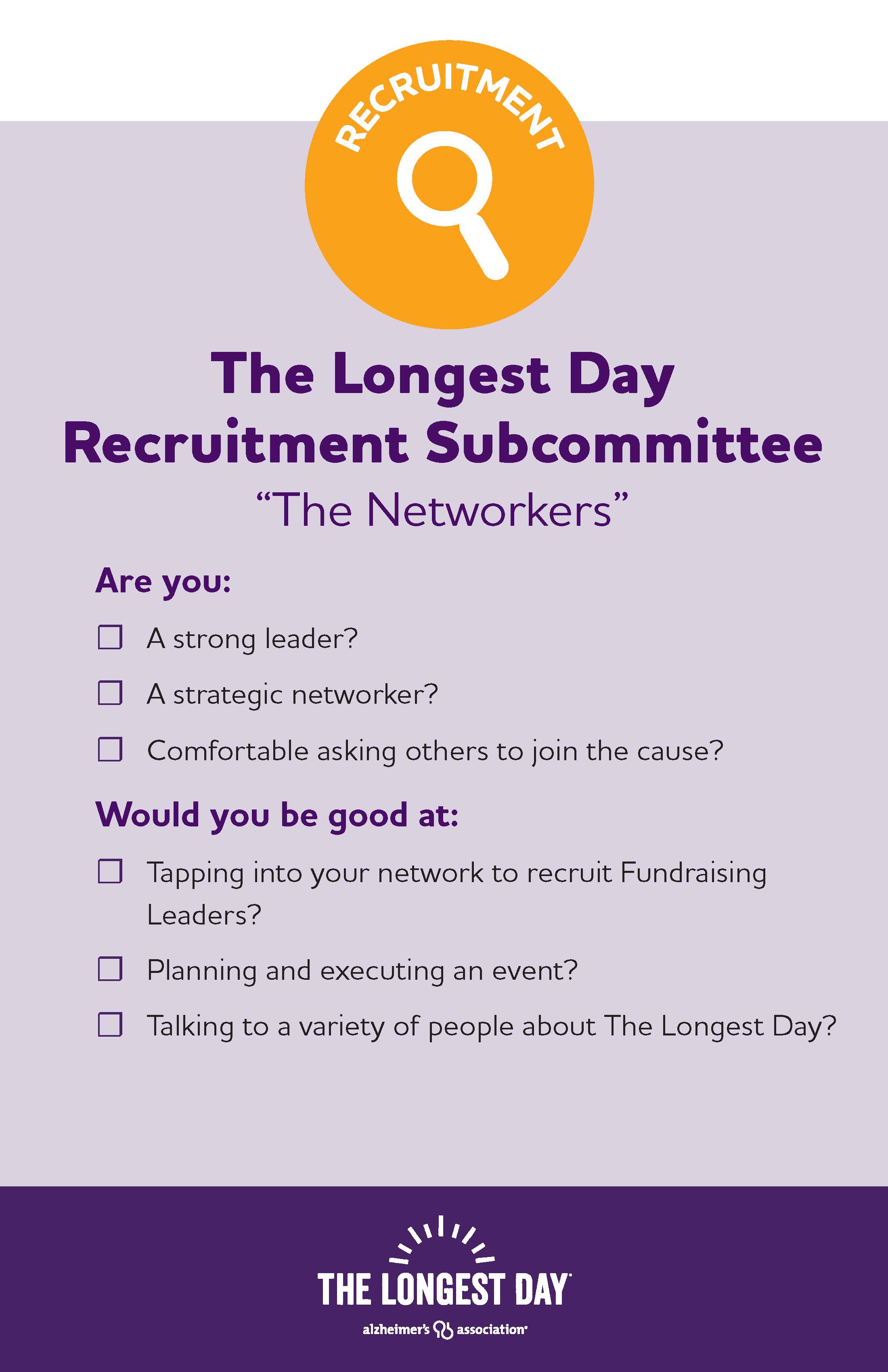 The Longest Day Volunteer Committee is a fun group of volunteers focused on bringing out the creativity in our fundraisers and teams. Committee members help recruit participants, provide coaching on fundraising and event planning, and spread the word about this exciting campaign.