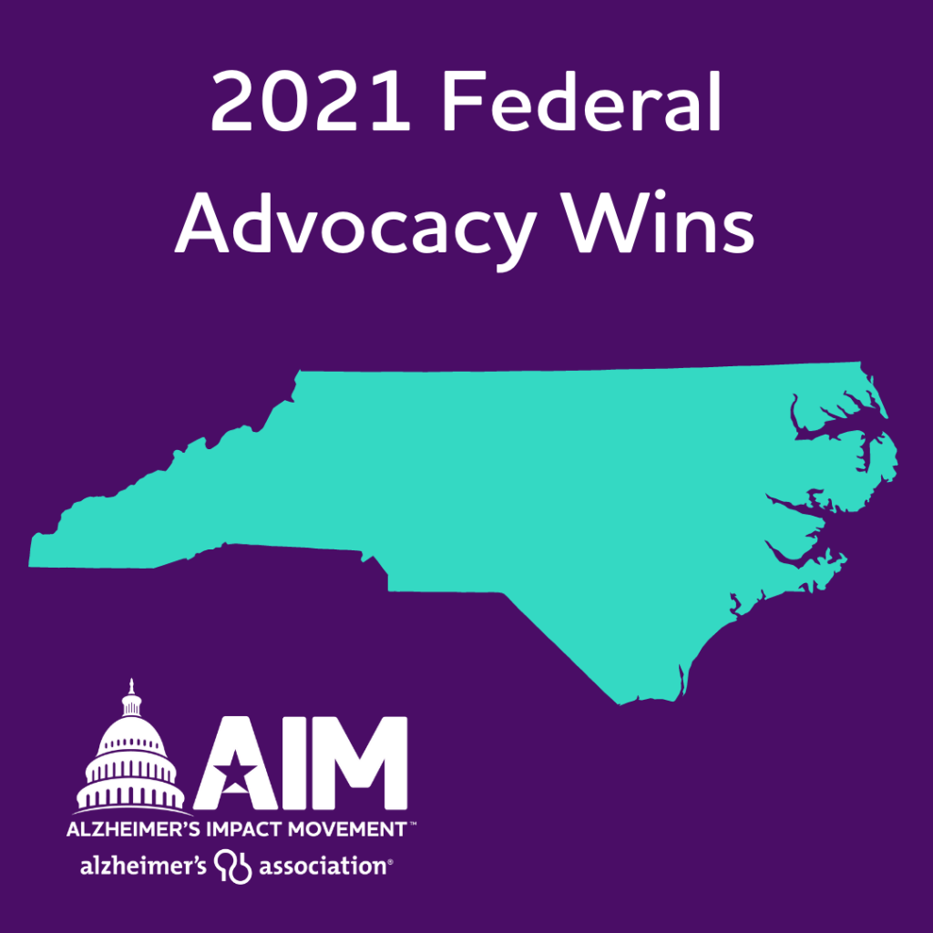 As we are nearing the end of 2021, we are looking back at the progress our NC advocates have helped make in federal policy. There’s been exciting movement in federal legislation that would support those living with Alzheimer’s and other dementia. We look forward to continuing to advocate for these priorities in 2022.
