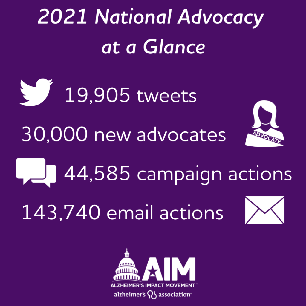 Thanks to the Alzheimer’s Association’s advocacy and public policy efforts, in the last year, on a state and federal level, individuals, families and communities impacted by Alzheimer’s and other forms of dementia have promising new support. Here’s just some of the “wins” we are celebrating as we close out 2021.