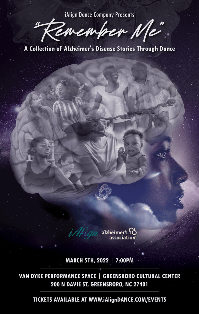On March 5, 2022, iAlign Dance Company will present the show ‘Remember Me’. The community is invited to attend either virtually or in person in Greensboro, N.C. A portion of their ticket sales will go towards their The Longest Day fundraising efforts. All are invited to enjoy this storytelling-in-motion from wherever is most comfortable to you!