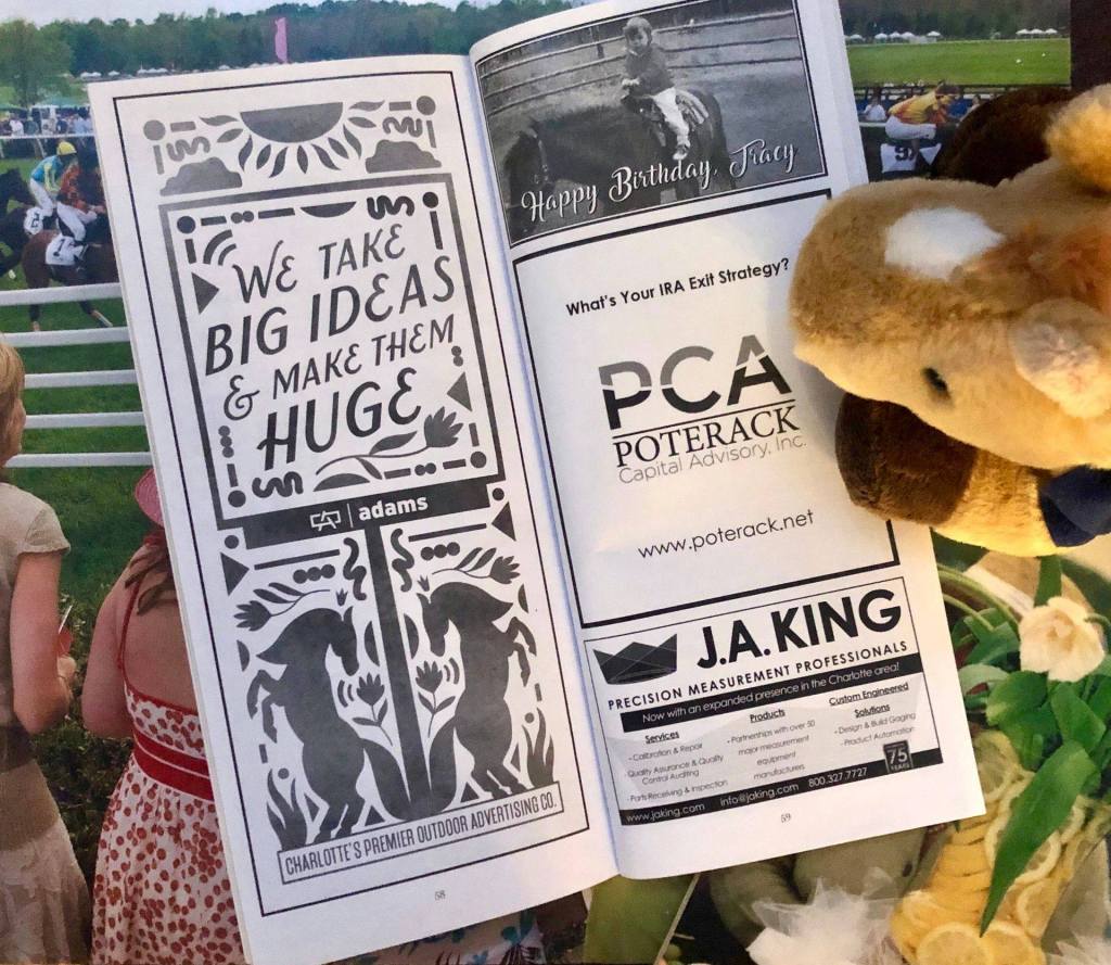 Industries and individuals seeking maximum access and exposure are invited to advertise in the Queen’s Cup Steeplechase’s Official Race Program. 100 percent of ad revenue benefits our Alzheimer’s Association chapter, as the official charity partner. This premier social and sporting event has it all; from style and class to the demographic any business would want to be associated with, advertising in the Official Race Program is a great and inexpensive way to start. Patrons pour over each and every page to look at the photos, ads and of course the entries for each race on the card. Consider this…