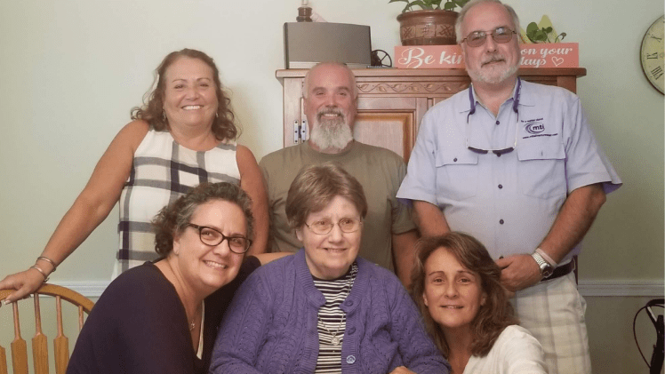 The family had to pivot swiftly on the night that Pat passed away. Thankfully, Irene was aware enough of what was happening to call 911 and they connected with Angela and her siblings. Angela recalled, “I will never forget her coming out of her bedroom with his slippers, saying ‘What do I do with these now?'” After several hours of answering repeated questions about planning funerals and other arrangements, Angela calmly took her mom under her arm, they got into bed together to sleep, and then in the days that followed Angela and her siblings arranged for assisted living for Irene. The family set up Irene’s suite exactly how it was arranged at home to ease the transition. She lived there for a year and a half before moving to the memory care unit. There she progressed rapidly, forgetting family members names, and eventually passed away from a stroke.