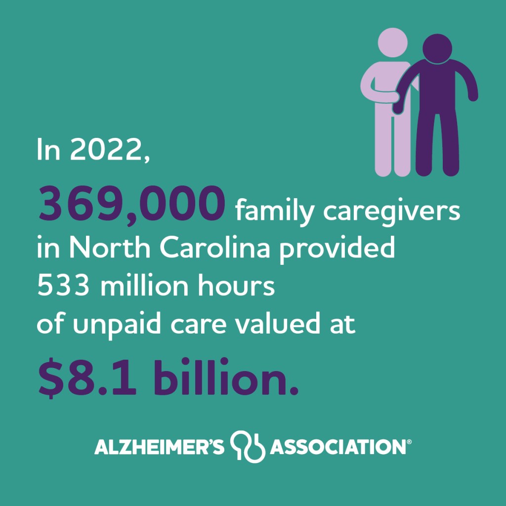 The Alzheimer’s Association Facts and Figures report finds the burden on North Carolina Alzheimer’s and dementia caregivers is growing. The new report released today shows there were an estimated 369,000 dementia family caregivers across the state in 2022, providing 533 million hours of unpaid care valued at $8 billion.