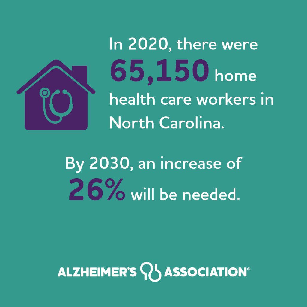 Shortages are looming for direct care workers in North Carolina and across the country. Direct care workers, including nurse aides, nursing assistants, home health aides and personal care aides play a vital role in caring for people living with Alzheimer’s and other dementia in private homes, community-based settings such as adult day services and residential care, skilled nursing homes and other settings.