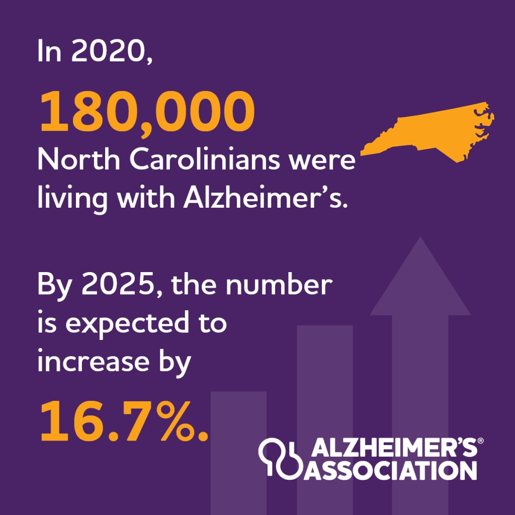 “This year’s Facts and Figures report underscores the considerable physical and emotional toll North Carolina caregivers experience when caring for someone living with Alzheimer’s. It clearly underlines the need for caregiver support in North Carolina. The Alzheimer’s Association offers free local support throughout our state including support groups, education as well as the Association’s 24/7 Helpline. This support can be a lifeline to caregivers.”