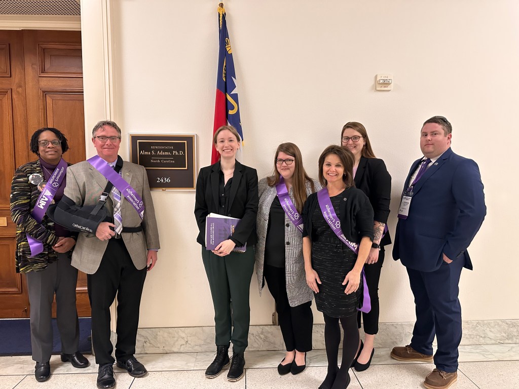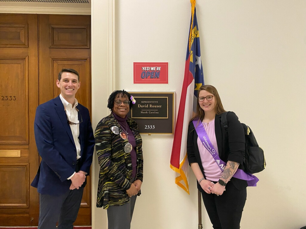 In addition to the Rally for Access, North Carolina advocates met with members of Congress to ensure bipartisan support for the NAPA Reauthorization Act, the Alzheimer’s Accountability and Investment Act, the Comprehensive Care for Alzheimer’s Act, and funding of an additional $321 million for Alzheimer’s research at the National Institutes of Health (NIH) and $35 million for implementation of the BOLD Act at the Centers for Disease Control and Prevention (CDC).