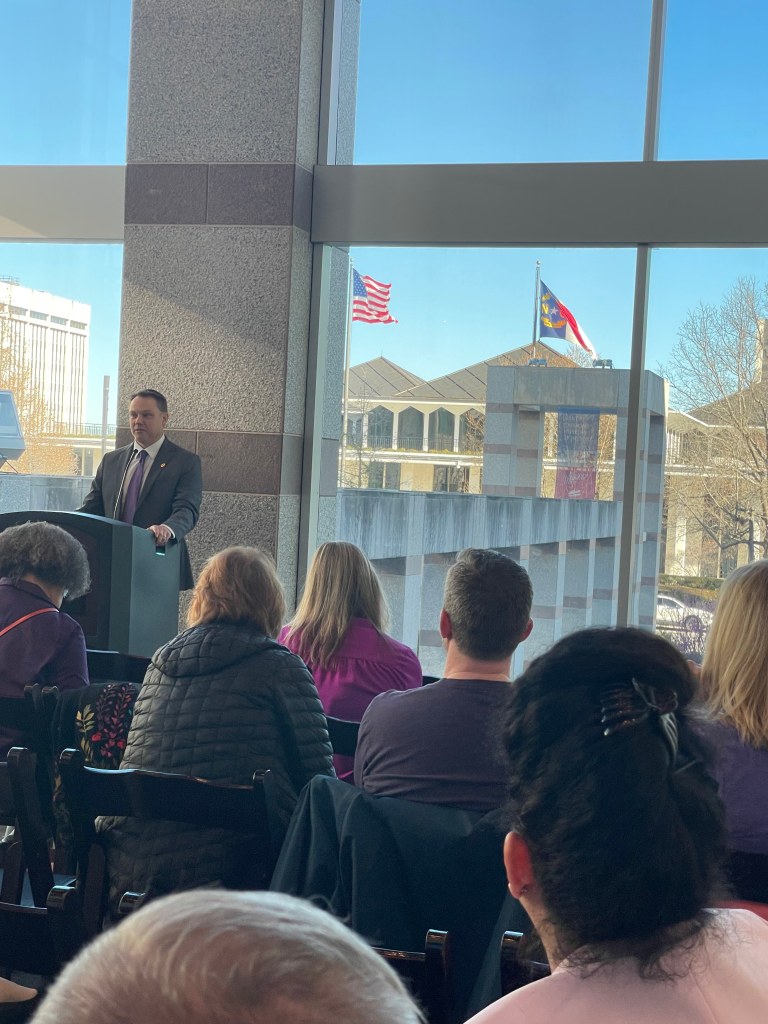 On March 15, 2023 dozens of advocates from across North Carolina gathered in Raleigh for our NC State Advocacy Day. The day is designed to move legislators to action on Alzheimer’s and dementia policy that will improve the lives of North Carolina families impacted by the growing burden of Alzheimer’s. This year, advocates gathered at the North Carolina Museum of History for an update on state policy needs and the opportunity to hear from Heather Carter, the State Alzheimer’s Coordinator from the NC Division of Aging.
