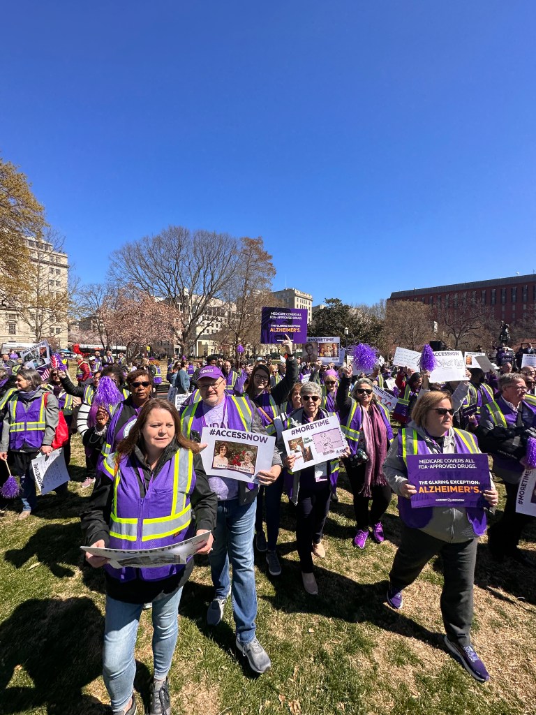 As the era of treatments brings hope to many, it has also been challenging for thousands living with Alzheimer’s disease as the Centers for Medicare and Medicaid Services (CMS) continues to refuse coverage for Alzheimer’s treatments. As 2,000 people a day transition past the point they would be eligible to receive treatments, advocates came together to use their voice & purple presence in D.C. to show the critical importance of CMS covering Alzheimer’s treatments. For the first time ever, advocates rallied outside the White House to urge the Biden Administration to change its misguided decision to block access to FDA-approved Alzheimer’s treatments. Watch highlights of the Rally for Access here.