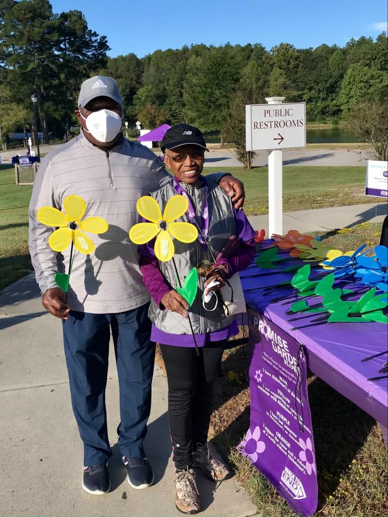 Becoming active in the Moore County Senior Enrichment Center following her move, Charlie learned of the Walk to End Alzheimer’s in 2019. Inspired to honor her father and stepmother, she has faithfully participated every year since. She encourages her friends and family to contribute to her fundraising efforts through her Facebook fundraiser and personal outreach. With more members of her family being diagnosed with the disease, Charlie is determined to help end Alzheimer’s and hopeful to see the White Promise Garden Flower — symbolizing the first survivor of Alzheimer’s disease — raised at on Walk Day in the near future.