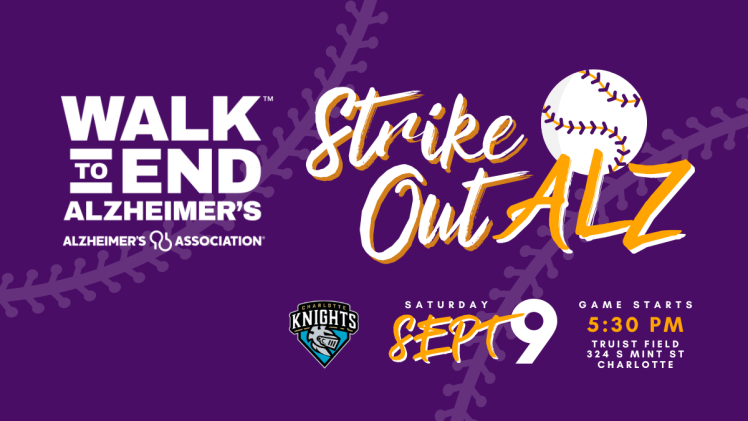 The Alzheimer’s Association – Western Carolina Chapter is teaming up with the Charlotte Knights to Strike Out ALZ — Alzheimer’s Awareness Night on Saturday, Sept. 9 at Truist Field – 324 South Mint Street in Charlotte.