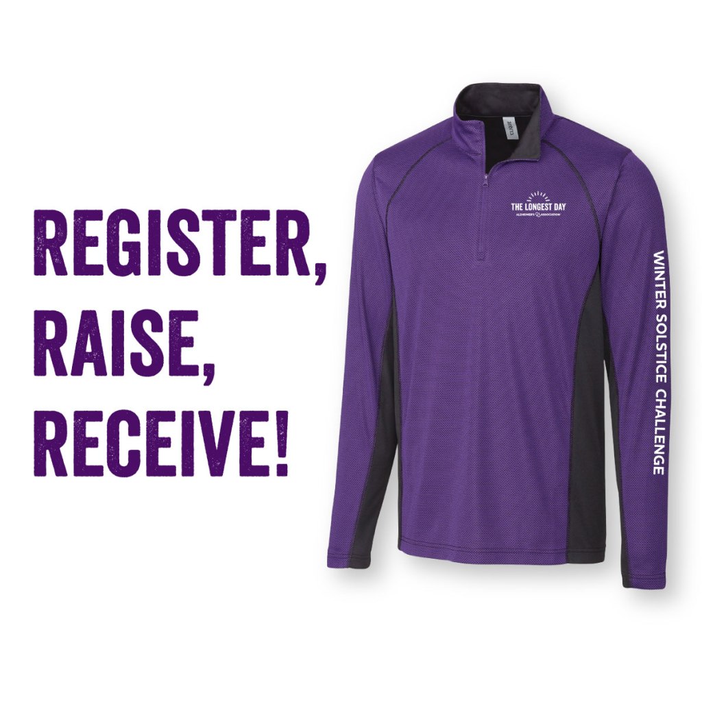 Register and raise $200 by the winter solstice on December 21 to to earn a limited edition long sleeve half zip pullover exclusively designed for The Longest Day!