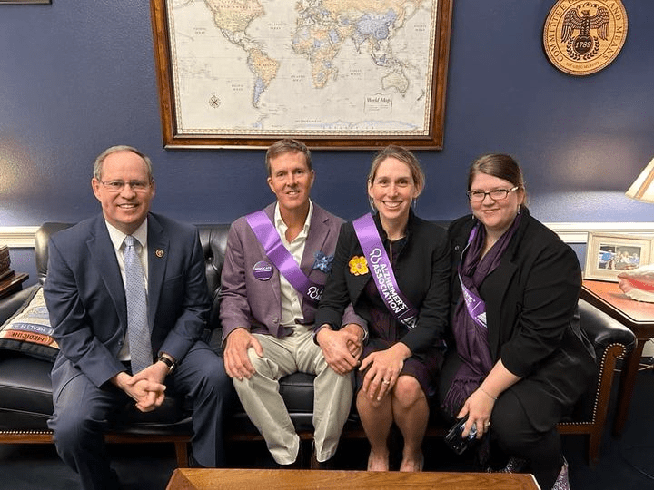 The timing of Carter’s diagnosis was also remarkably close to the approval of the very first fully-approved drug treatment to help slow the progression of Alzheimer’s. Leqembi, however, was not easily accessible and it took months for Carter to get the life-changing medication. This motivated the couple to become Alzheimer’s Association advocates and meet with their state, local and national representatives to advocate for the accessibility of this type of medication and the importance of coverage to help those in the early stages of Alzheimer’s. In fact, Carter and Cate were selected to represent their congressional district for the Alzheimer’s Impact Movement Advocacy Forum in Washington, D.C.