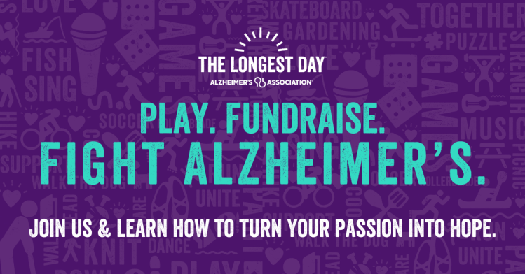 The Longest Day is a fun, flexible way to join the fight. Participants in this do-it-yourself fundraiser, select an activity, and pick a time that is convenient for them, and create their own unique fundraisers to fuel the efforts of the Alzheimer’s Association. With your support, we are empowering and mobilizing our community to give all people access to early diagnosis, treatment and quality care throughout their journey.