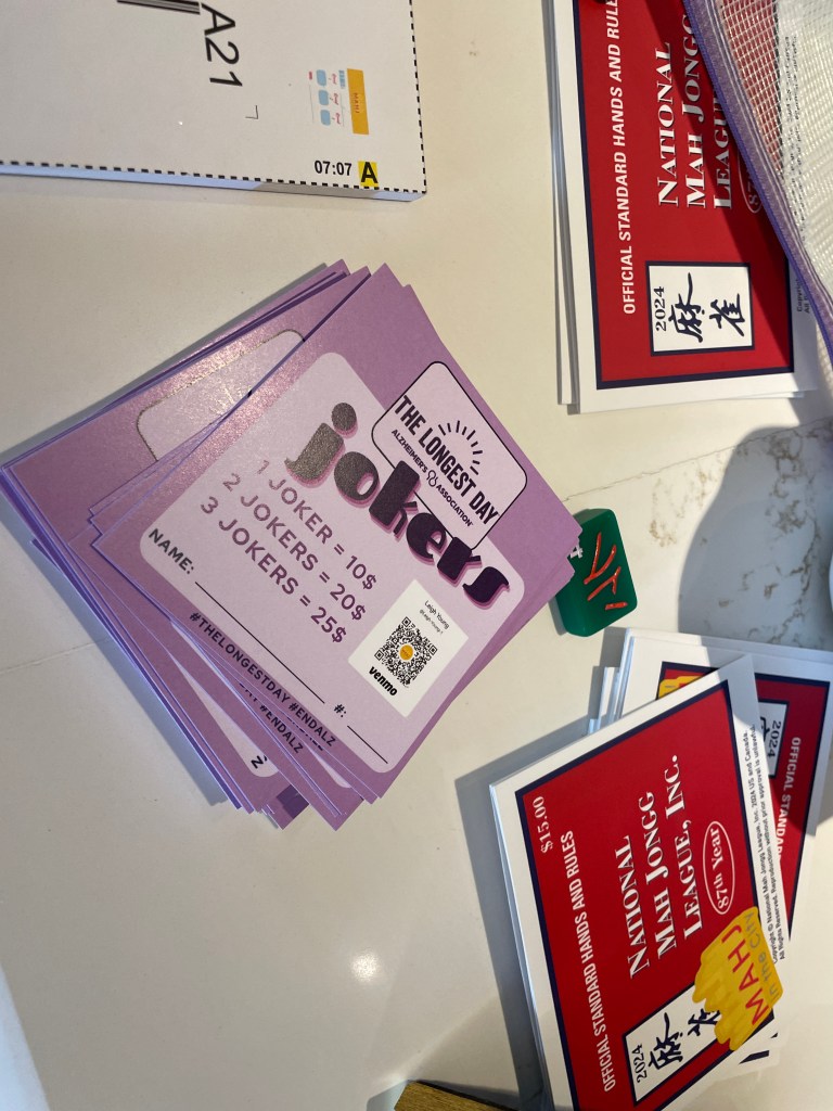 “There are four clubs in the Charlotte area that host The Longest Day fundraisers and we would love to see that grow, and our goal is to add Mah Jongg to each one of them.”