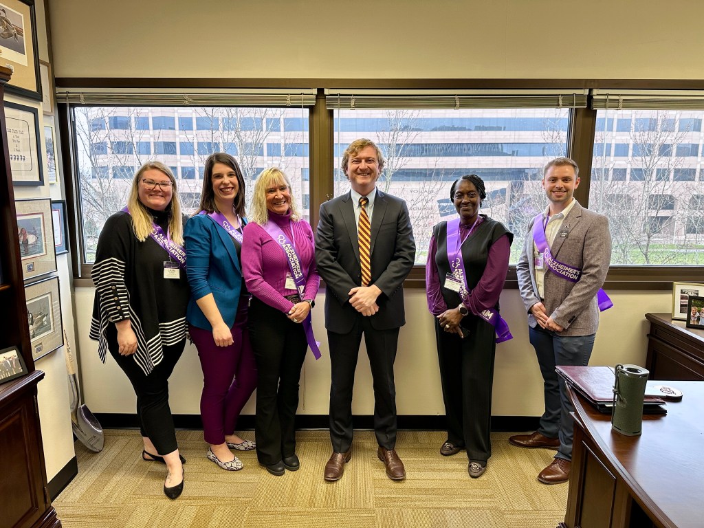 Over the last few weeks, advocates have met with Congressional district offices across the state to discuss the importance and urgency of continuing our nation’s commitment to Alzheimer’s research by requesting that Congress increase research funding for Alzheimer’s and dementia research activities at the National Institutes of Health (NIH) by $318 million in FY25 and provide $35 million to continue funding the implementation of the BOLD Infrastructure for Alzheimer’s Act at the Centers for Disease Control and Prevention (CDC).