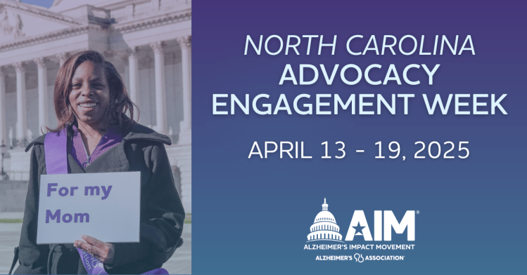 On April 13 – 19, North Carolina will hold an Advocacy Engagement Week to raise awareness among our federal and state legislators, ask for their support for NC families facing Alzheimer’s or other dementia, and build momentum by harnessing the power of many advocates’ voices. With just a few minutes each day, you can make […]